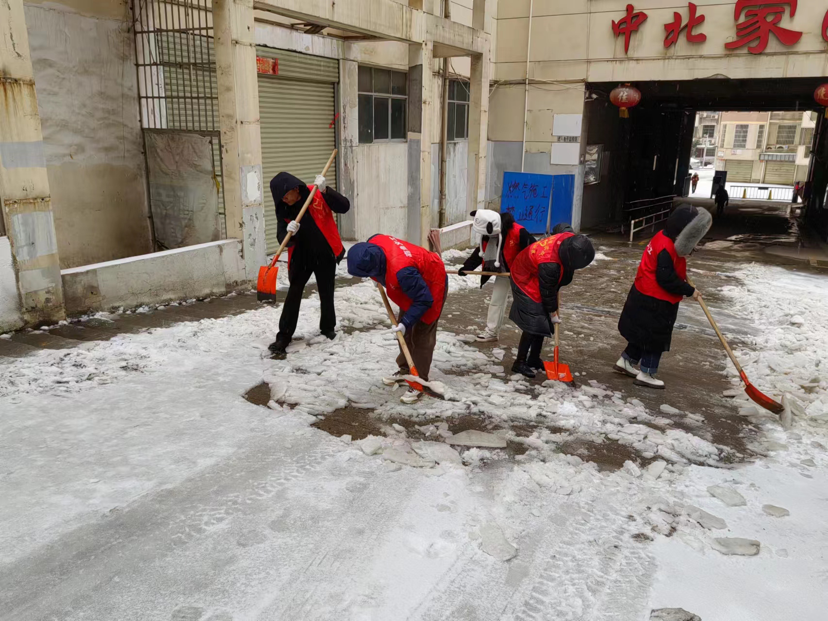 图为该县纪委监委机关干部下沉包保社区铲除道路积雪